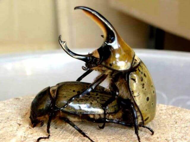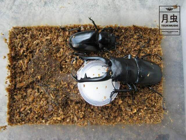 またクワガタにおいては♀の上に♂を乗せると、♂がなかなか♀を掴みにくいことがよくありますので、特に体高の低いクワガタ(ヒラタクワガタやオオクワガタ等)については後ろから乗せるのではなく、♂と♀をクロスに置くように接すると上手くいく場合が多いです。