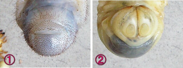 参考画像の様に、カブトムシ幼虫はお尻の割れ目が横になります。
