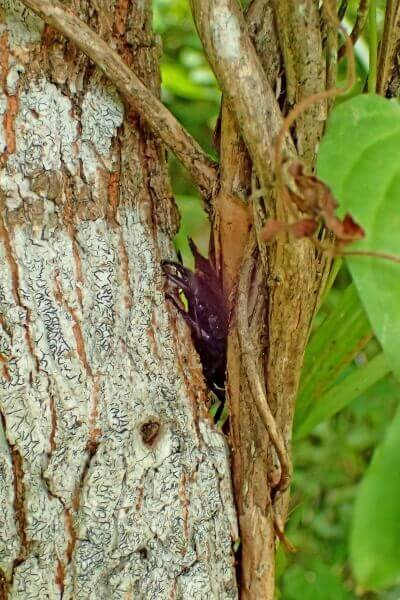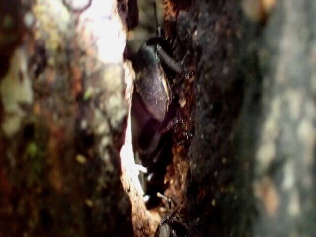 同じくツタの付近に小さなスジクワガタ♂がいました。