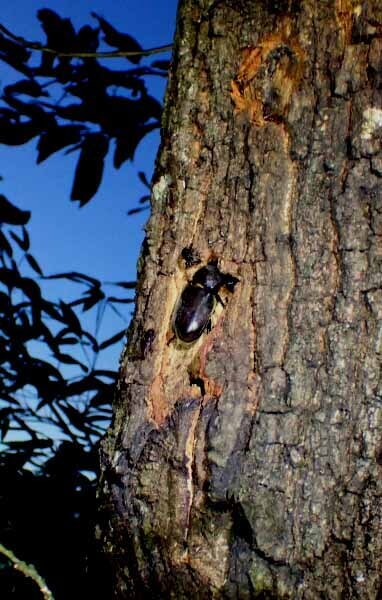この時間帯になると、昼間はウロや樹皮裏に隠れている個体も、外に出て来て活発に樹液を求めるようになります。