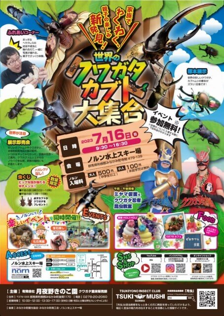 今週の週末の日曜日:2023/7/16に【世界のクワガタ・カブト大集合 2023】が行われます。