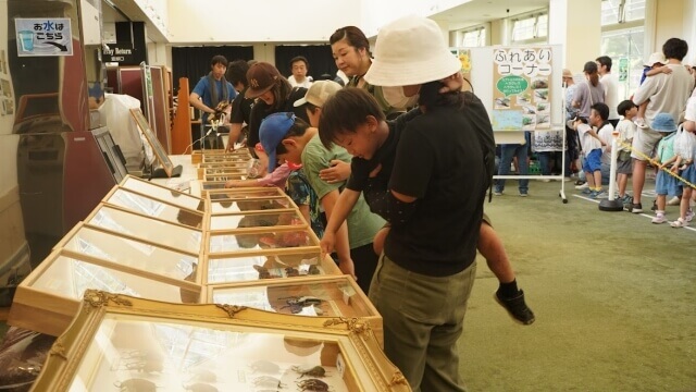 併設された標本コーナーも人気で皆さん珍しそうに見入っていました。