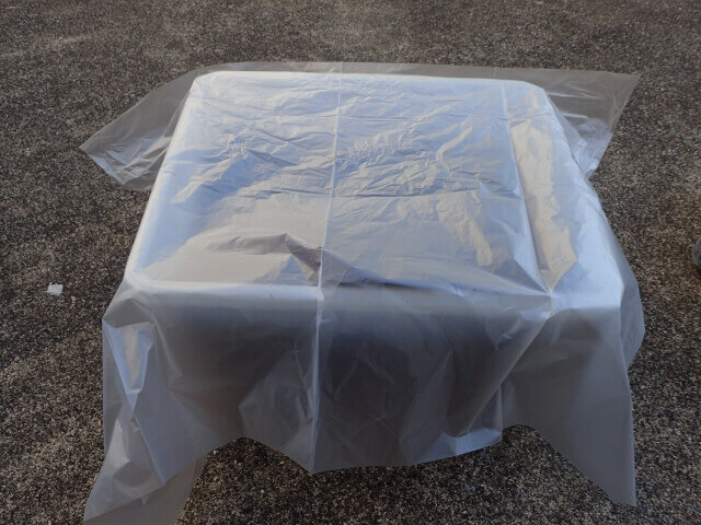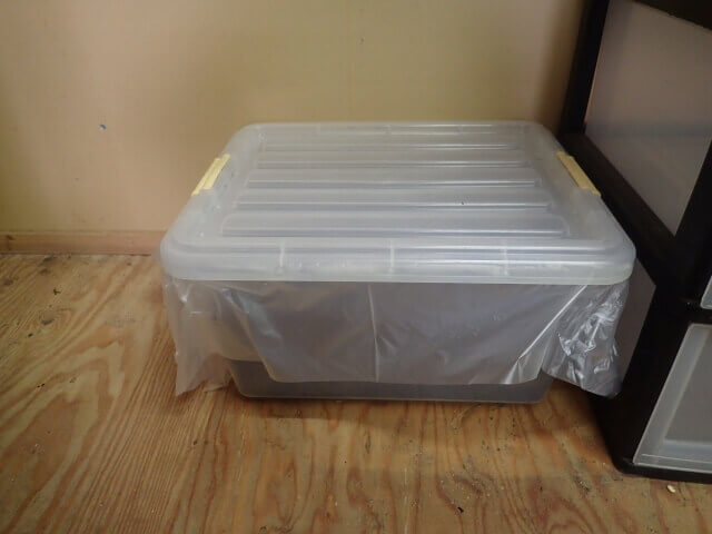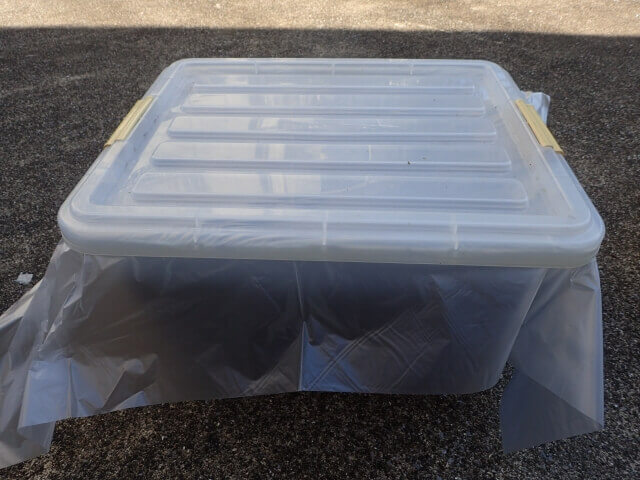 ⑩大きめのケースに④の廃マットを敷き詰めます。