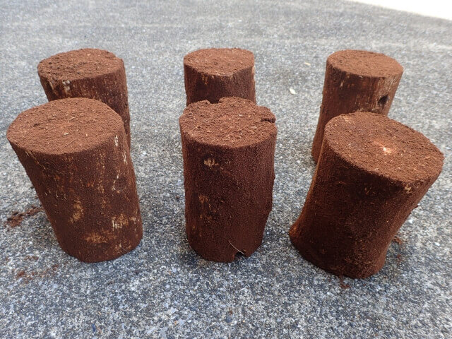 ⑪陰干しした材に⑦の幼虫糞カスをまんべんなく刷り込みます。