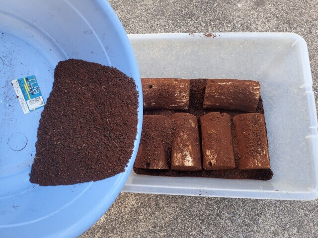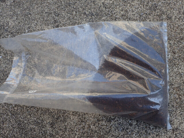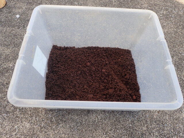 この時は幼虫の糞カスが少なかったので、廃マットを入れましたが、幼虫の糞カスが十分な量あるならば廃マットを入れる必要はありません。