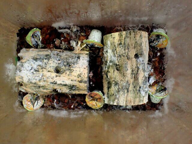 糞を混ぜたものと比べると防カビ効果は若干弱くなる場合もありますが、一度新品のマットでも漬け込んでその材を使用するだけでも、通常のセッティングをした材よりかはカビが生えにくくなるのでやってみる価値はあると考えてます。