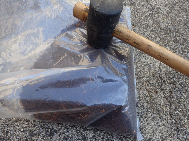 ⑬材の周辺もまんべんなく⑦の幼虫糞カスを入れていきます。