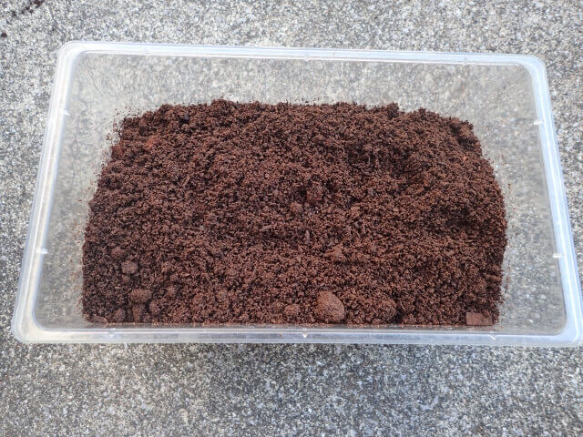 ④※糞そのものが無い場合は、他のクワガタやカブトの産卵セッティング後の廃マットや幼虫飼育で使用したマットや菌糸食痕カスを利用しても良いです。勿論糞と合わせてもOK