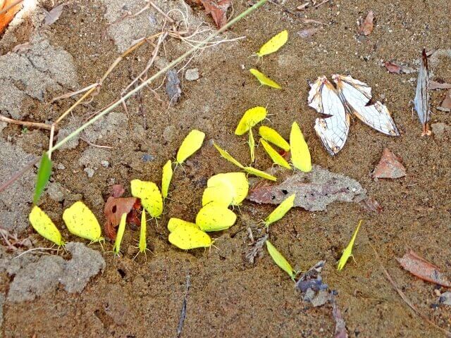 イシガゲチョウとキチョウ?が土の水分を吸水しているようです。