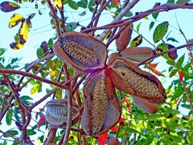この時期の美味しい秋の山のフルーツですが、これはもう開いてからしばらく時間が経過している感じですね、皮も実も水分が飛んでしぼんでいます。