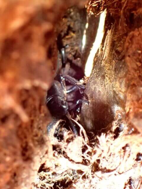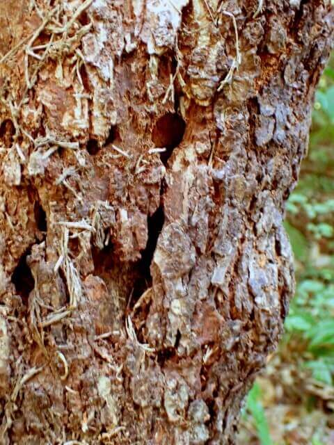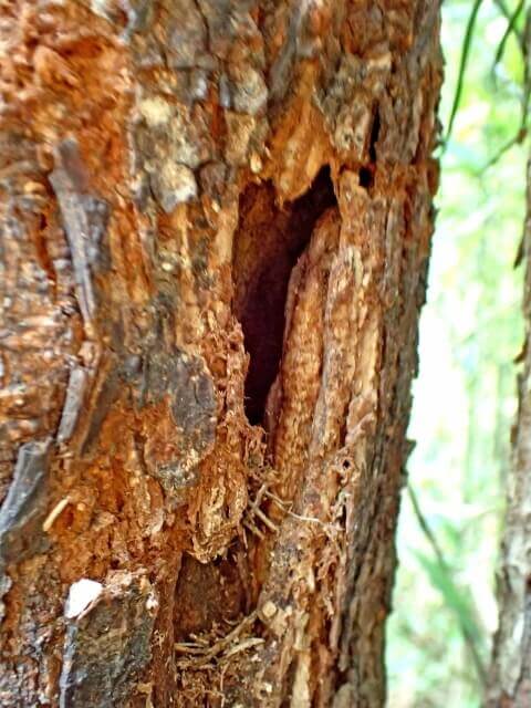 この時期ならではの採集方法、樹皮裏やウロをチェックしていきますが、