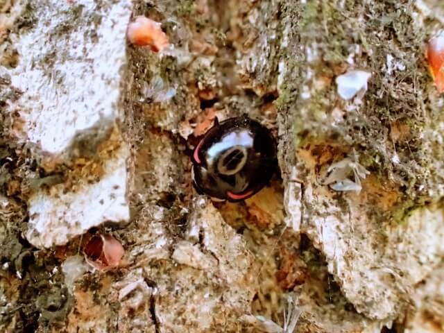 この子以外にも2~3頭ほどぽつぽつと樹の樹皮の小さい隙間でじっとしていました。おそらく越冬しているんでしょう。