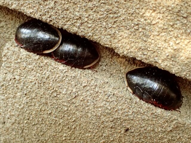 建物の外壁の溝に集団で固まっていたのは、サツマゴキブリ。