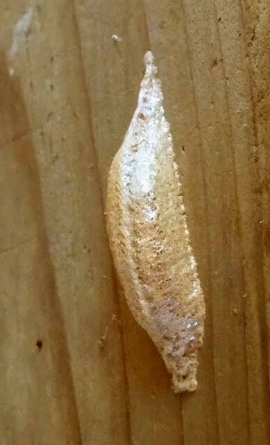 同じく建物に立てかけてあった木の板?にはりついていたコカマリの卵を見つけました。