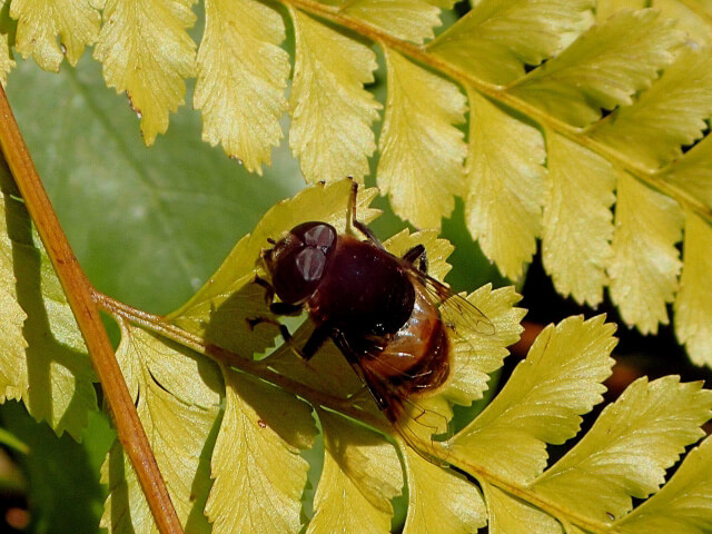 縞模様のコントラスト、あと眼の上の方が独特な風貌をしていて面白い昆虫ですよね^^