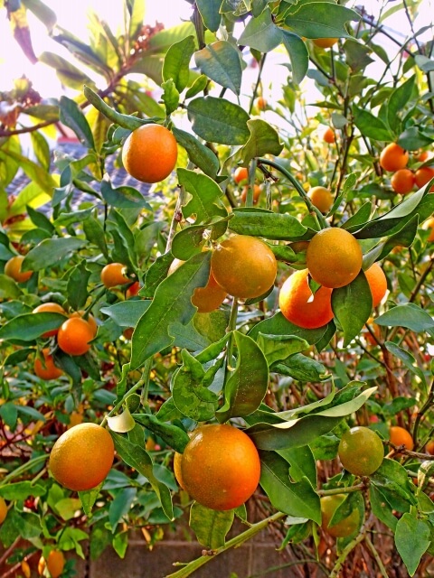 我が家の庭に金柑が沢山実っており、その落下した果実に集まって来てるようです。