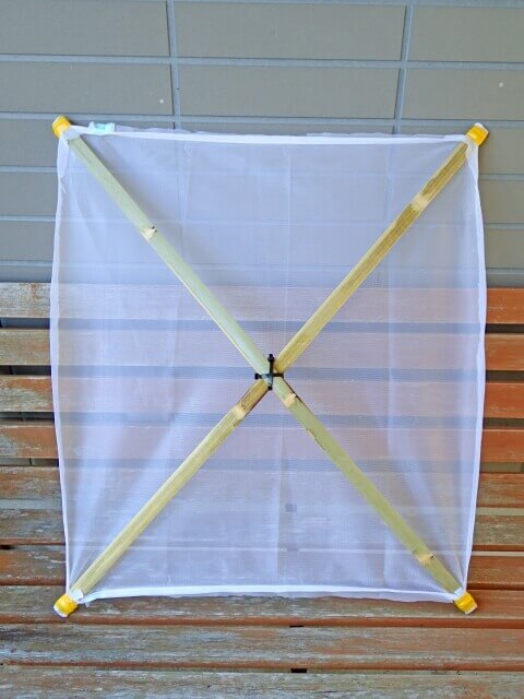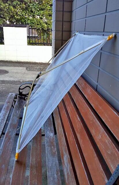この道具は2つとも私が作成したものですが、こういったものを用意しなくても、ネットは虫網、叩き棒は木の棒など、何でも構いません^^