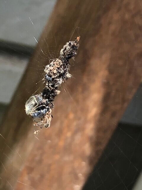 植物の葉間に巣を張っていたのはゴミグモの一種