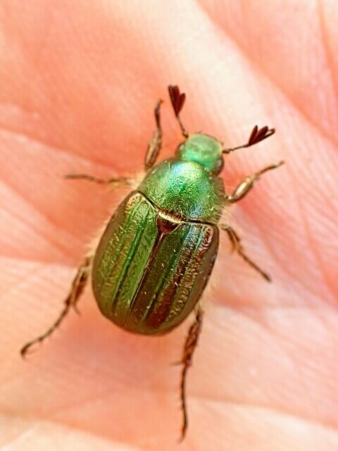 本来は本州中部以南で見かけるコガネムシですが、最近では温暖化のせいもあって関東辺りでも見かけるそうです。