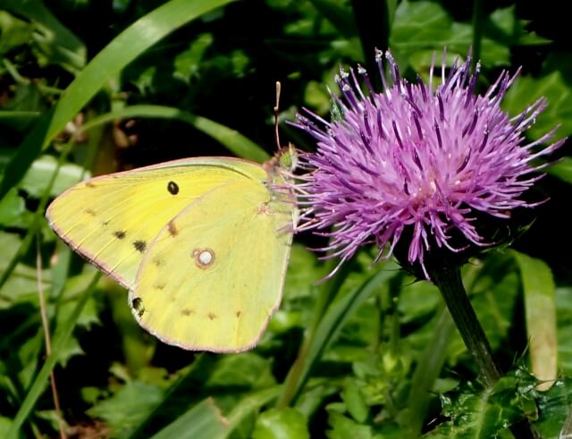 アザミの花に集まっていた、モンキチョウ