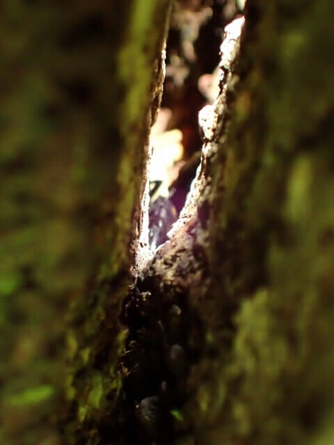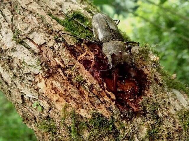 ハルニレ木々の隙間の奥に大きめのクワガタの姿を発見!