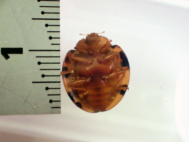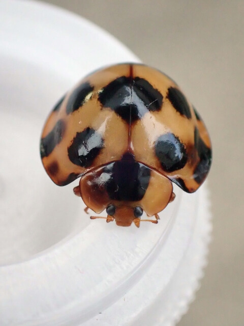 とても大きく、ナナホシテントウやナミテントウの大きさ(約6~7㎜)で見慣れている私にはちょっとビックリの大きさです。