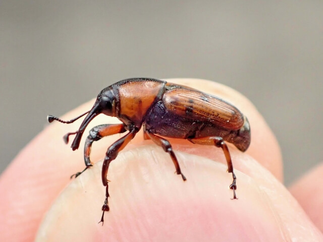 上記オオテントウを見つけた同じ種の竹で見つけたのがこのホオアカオサゾウムシ