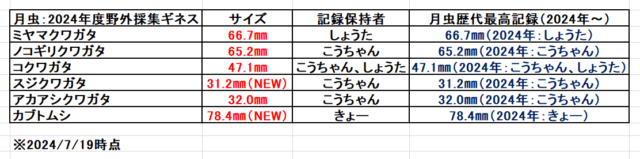 現時点での月虫野外採集ギネス記録は以下のようになっています。