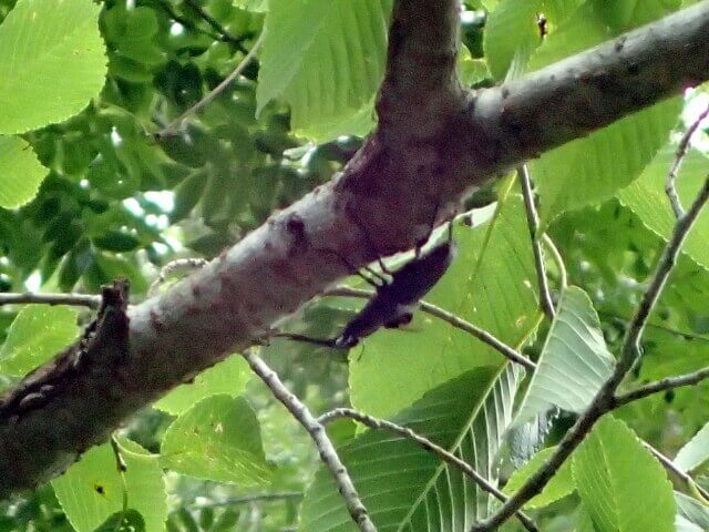 ハルニレの枝にかなり大きいノコギリ♂の姿を発見!