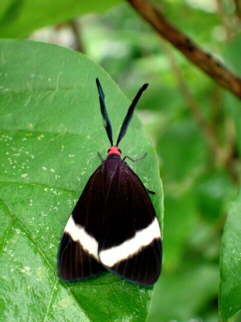 蛾というと茶色のイメージですが、この種は一見蛾とは見えないような色合いをしています。