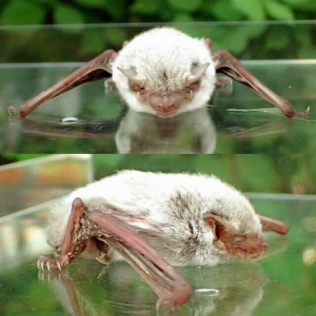 調べてみるとアブラコウモリに近いような感じがしますが、色合いは体毛も白っぽく正確には分かりません。。
