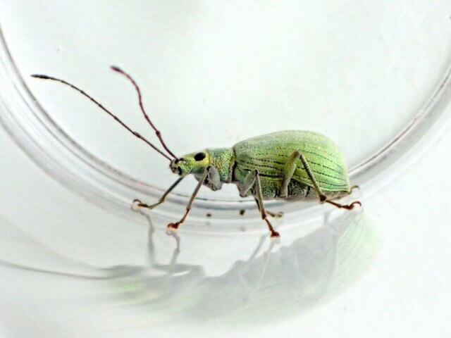 葉上で見つけたアオヒゲナガクチブトゾウムシ