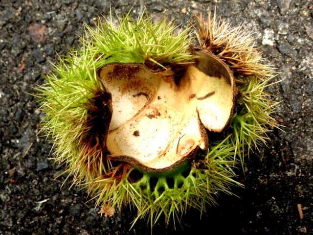 中身は既に無くなっていましたが、イガはまだ青いまま・・