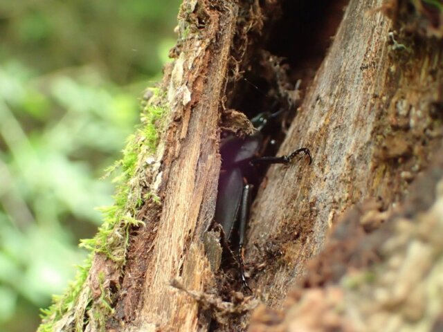 ウロの少し奥深くにヒラタクワガタ♂が入っていました。