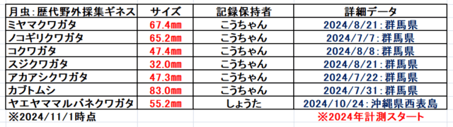 現時点での月虫野外採集ギネス記録は以下のようになっております。