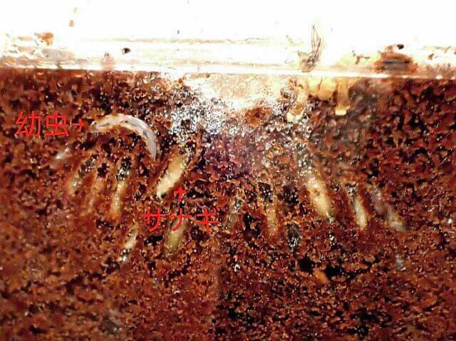 このように幼虫と蛹がめっちゃ沢山見えています。