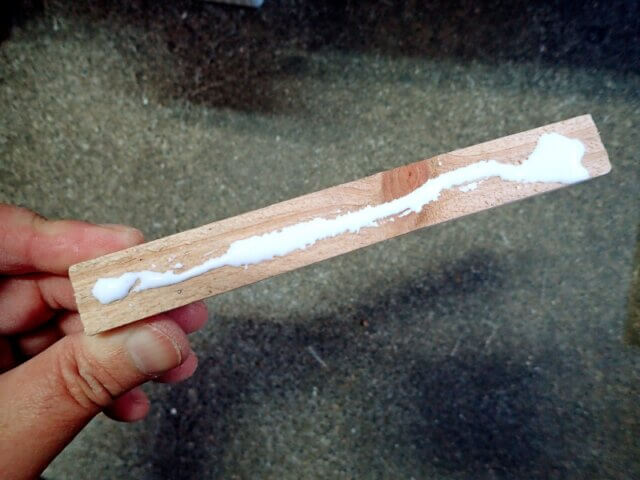 この画像を撮影した時にはまだ木工用ボンドが乾ききっていない為白くはみ出して見えますが、時間と共に透明になって目立たたなくなりますので問題はありません。。