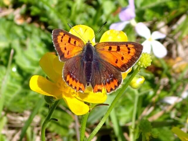黄色いウマノアシガタの花にベニシジミ蝶の姿を沢山目にしました。