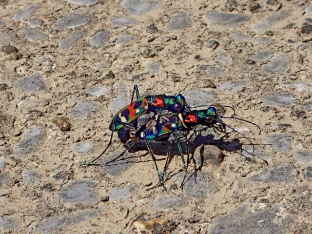 上流域の河原で見つけた♂♀ペアのナミハンミョウ