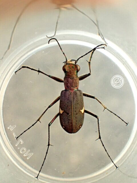 よく見かけるナミハンミョウはカラフルな色合いをしていますが、こちらはどちらかというと地味な色合い。。