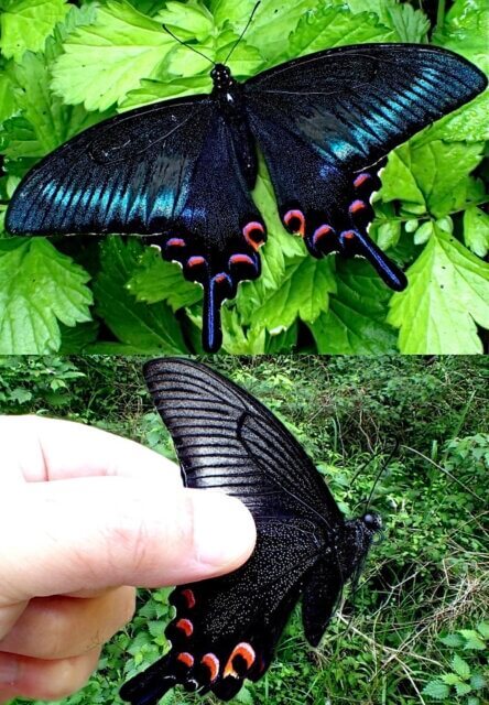 山間部でよく見かけるアゲハチョウ種であるカラスアゲハ