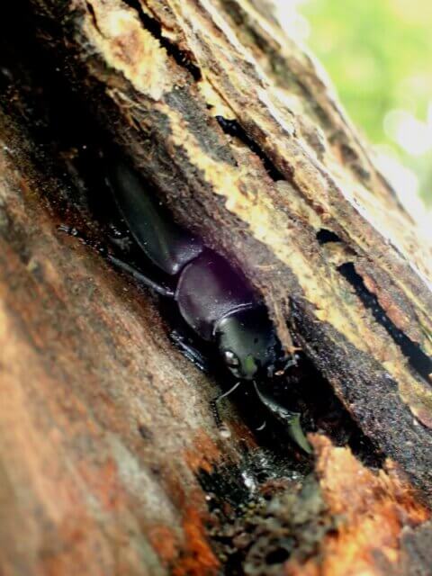 ハルニレの木々隙間に潜むヒラタクワガタ♂個体!