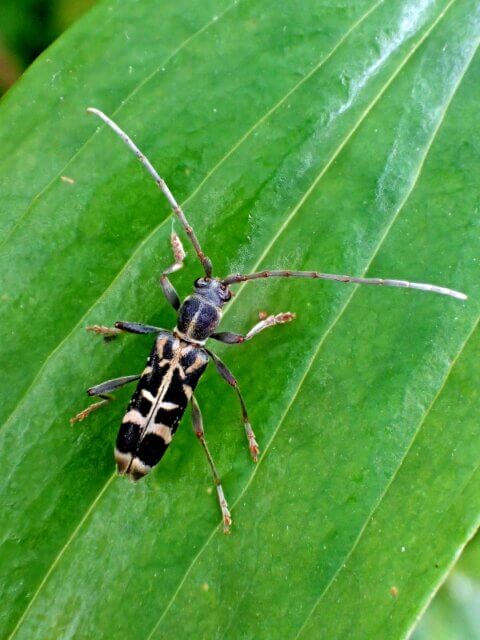 葉上で見つけたの葉、シロトラカミキリの♂個体