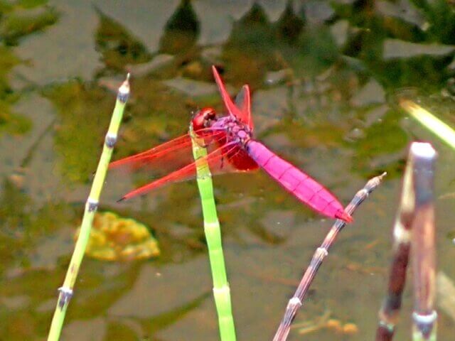 少し小さいトンボですが、この種の♂はとても赤く美しいです。