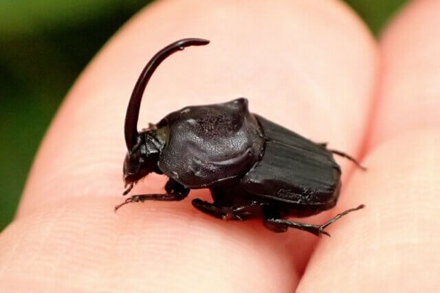 ♂は立派な角を持ち、一見カブトムシのようにも見えます。。