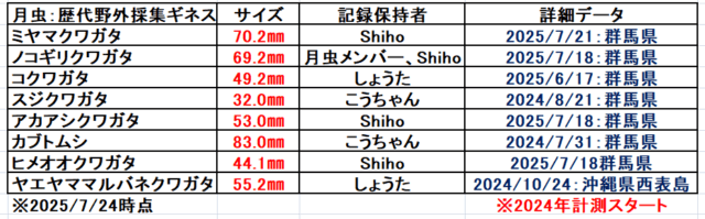 本来私:Shihoは宮崎県で採集しており、採集地が同じ土俵ではないので月虫ギネスには参加していなかったのですが、今回の採集地は同じ群馬が採集地だったということもあり、月虫ギネスに入れさせてもらいました。ご了承下さいませm(__)m