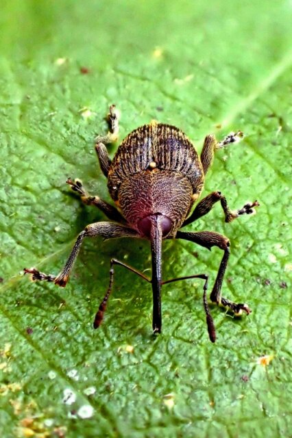 イヌビワの木の葉上で見つけたのは、イヌビワシギゾウムシ
