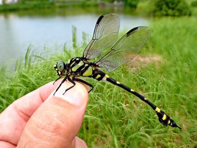 池のほとりで見つけたタイワンウチワヤンマ♂