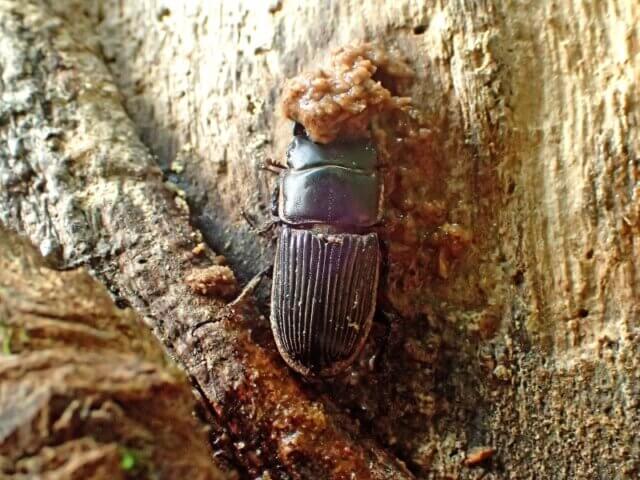 こちらのハルニレの木では樹液に頭を突っ込んでいるネブトクワガタ♂の姿がありました。