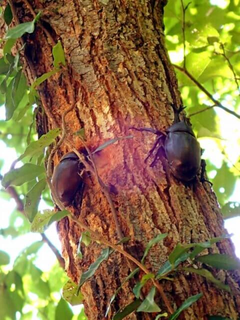 採集ポイントに到着して最初に出迎えてくれたのは、ハルニレに付くカブトムシの♂♀ペア